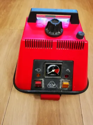 Vaporeta Lady Vap 1500 en color rojo. Funciona perfectamente. Con todos los accesorios incluidos. Con bolsa original de transporte - Incluye manómetro. - Interruptor de encendido/apagado.