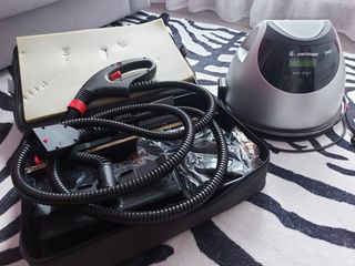 Vaporeta Ecus - limpiadora a vapor. Ideal para limpiar a fondo cualquier superficie. Incluye todos los accesorios: - Centro de planchado. - Manguera y barras de extensión. - Cabezal para limpieza de cristales. - Varios cabezales de limpieza. Diseño compacto. Perfecto estado de conservación.