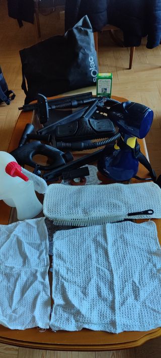 Limpiador de vapor, marca Solac, modelo LV1450, prácticamente sin uso. Incluye todos los accesorios que se muestran en la foto.