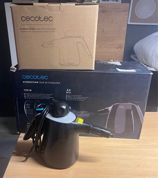 Vaporeta Cecotec Hidrosteam 1040 Active & Soap en color negro. Ideal para la limpieza con vapor. Nueva con todos los accesorios sin usar - Potencia de 1100 W. - Presión de 3,5 Bares. - Incluye 5 accesorios.