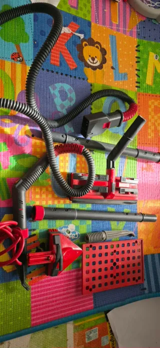 Vaporizador Ladyvap de color rojo. Incluye varios accesorios para su uso. - Manguera flexible. - Tubos extensores. - Cepillo. - Accesorio para esquinas.