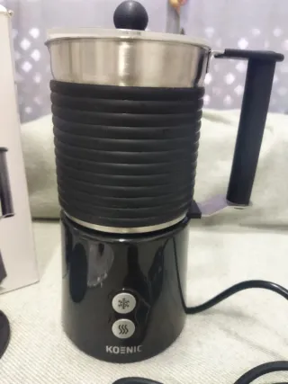 Vaporizador/ espumador /calienta de leche KOENIC KMF 5212 en color negro. Funciona perfectamente en su caja original. - Diseño moderno y compacto. - Jarra con asa. - Tapa transparente con botón. - Base de alimentación. - Cable de conexión.