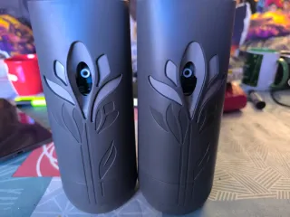 Dos vaporizadores ambientadores con un diseño floral en relieve. - Color gris. - Diseño floral en relieve.
