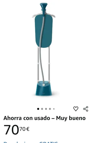 Plancha de vapor profesional SteamOne. - Potencia de 1750W. - Diseño ergonómico del accesorio de planchado. Steam One T-8 profesional plancha vertical vapor ropa Vaporizador vertical profesional que permite eliminar arrugas, neutralizar ácaros y refrescar cualquier prenda sin necesidad de plancha. La compramos para pasarelas por 159€ pero hace tiempo q no usamos, funciona perfectamente. Funciona con vapor continuo, calienta rápido, es ligera y cuida telas delicadas como seda, lana o tejidos con relieve. Se puede usar con agua del grifo y cualquier percha (no incluye el palo de colgar). - Manguera con funda protectora.