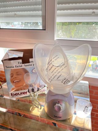Vendo sauna facial Beper, prácticamente nueva. Es de color turquesa y blanco, y se encuentra en perfecto estado. - Incluye el aparato, un accesorio y las instrucciones. - Ideal para tratamientos faciales en casa.