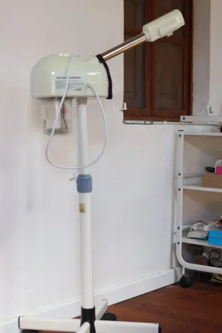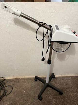 Vaporizador facial en buen estado, listo para usar. - Dispone de brazo flexible. - Incluye cabezal de vapor. - Base con ruedas para facilitar el movimiento. - Perfecto para tratamientos faciales en casa.