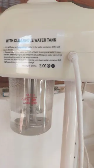 Vaporizador facial para uso en estética, con función de ozono. - Dos interruptores de control. - Depósito de agua transparente.