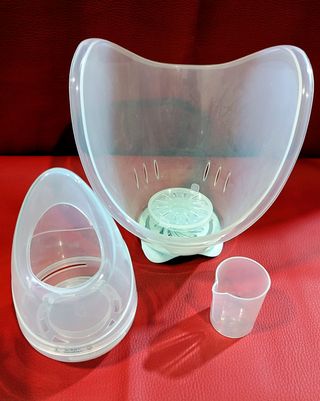 Apenas usada un par de veces hace tiempo con el accesorio de vapor aromatizado, la entrego recien limpiada y desinfectada. Sauna facial para el cuidado de la piel, inhalación, limpieza de los poros, hidratación con terapia de aroma, incluye 2 accesorios y control de vapor ajustable. 120W y 2 niveles de potencia. Accesorio de vapor con aplicación de aromas, tanque vaporizador de aluminio.
