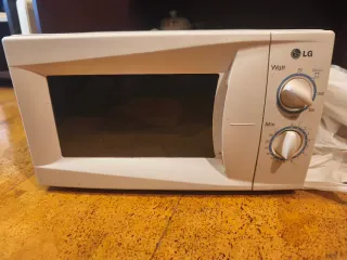 Microondas de la marca LG en color blanco. Un electrodoméstico práctico para tu cocina. - Diseño compacto. - Panel de control sencillo.