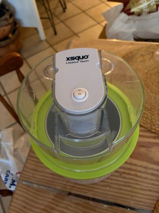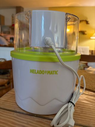 Máquina para hacer helados caseros. - Diseño blanco con detalles en verde lima. - Tapa transparente para ver el proceso. - Cable de alimentación incluido.