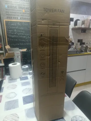 Ventilador de torre en su caja original. - Diseño vertical. - Múltiples modos de funcionamiento. - Control de velocidad. - Función temporizador. - Oscilación. - Incluye mando a distancia.