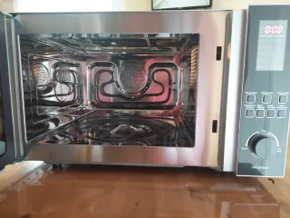 Microondas de la marca Corbero en color negro. Diseño moderno y funcional. - Puerta con acabado brillante. - Panel de control digital. - Mando giratorio para ajustar potencia y tiempo.