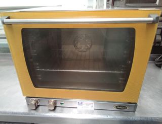 Horno de convección profesional UNOX Arianna. - Puerta con doble cristal. - Interior en acero inoxidable. - Panel de control con mandos. - Luz interior. - Medidas: 60x60x48 cm. - Para 4 bandejas. - Burlete de puerta nuevo. - Motor de ventilador nuevo.