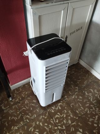 Enfría el aire con agua. Mando a distancia e instrucciones. Programador. Un solo uso. Recién comprado por 220€.