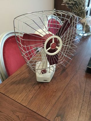 Preciosa pieza vintage. Ideal para decoración o coleccionistas. - Tiene un diseño elegante y atemporal. - Se encuentra en buen estado, considerando su antigüedad. - Perfecto para dar un toque retro a cualquier espacio. Valido para sobre mesa y colgar en pared. Aspas en metal. Dos velocidades. La lenta es muy lenta. Base en acero. Pieza auténtica no replica.