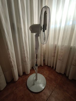 Ventilador de pie en color blanco, ideal para refrescar cualquier estancia. - Altura ajustable. - Base redonda estable. - Rejilla de protección.