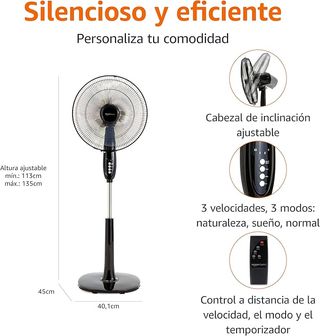 Ventilador Pie Amazon Basics 40cm c/Mando