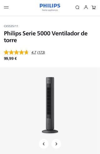 Ventilador de torre de la marca Philips en color negro. Se encuentra en perfecto estado. - Diseño vertical y estilizado. - Base redonda estable. - Rejilla frontal de seguridad. Se vende por motivos de mudanza