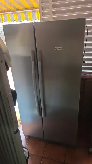 Nevera americana de la marca Balay. Diseño moderno y elegante. - Acabado en acero inoxidable. - Tiradores integrados. - Puertas de gran capacidad.