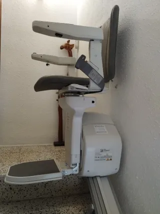 Silla salvaescaleras con un diseño moderno y cómodo. - Tapicería en color gris. - Reposabrazos con panel de control. - Incluye dos mandos a distancia. Tramo de guia de 5 metros rectos. Casi nuevo , instalado en Agosto de 2024 y con muy poco uso. Con 1 año y medio de garantia de la empresa Valida.