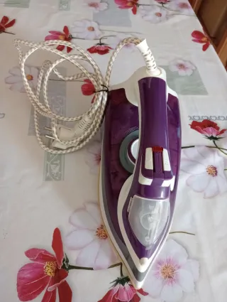 Plancha de vapor Jata con suela de cerámica. Como nueva creo que ni se ha usado nunca, solo un poco de agua para su comprobación de vapor, y que funcionae perfectamente, - Potencia máxima de 2400W. - Diseño en color morado y blanco.
