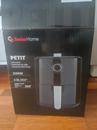 Freidora de aire Swiss Home modelo Petit. - Capacidad de 2.5L. - Potencia de 1200W. - Temperatura máxima de 200°C.