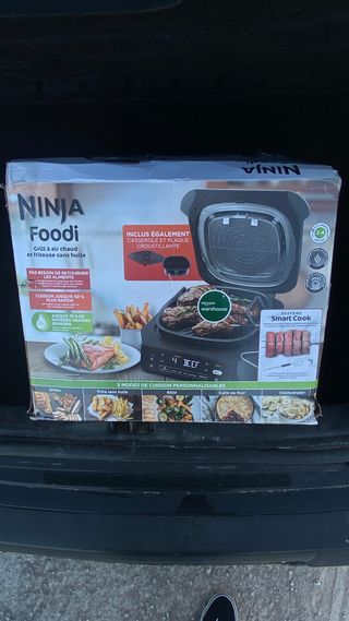 Freidora de aire y grill Ninja Foodi 5 en 1 en excelente estado. Freidora de aire y parrilla de interior, 5 funciones de cocción sin humo, cocina hasta 4 hamburguesas, capacidad de 5,7 L. Sistema Smart Cook Incluye - termómetro digital - cazuela y placa crujiente. - Cocina hasta un 50% más rápido. Reduce hasta un 75% de grasa. - 5 modos de cocción personalizables: Grillar, Freír sin aceite, Rostizar, Cocinar al horno, Deshidratar.