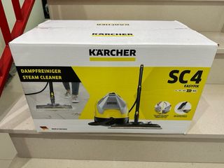 Limpiador a vapor Karcher SC4 EasyFix en color amarillo y gris. Ideal para una limpieza profunda. - Rendimiento de área: 100 m². - Tiempo de calentamiento: 4 min. - Capacidad del depósito: 0.5 + 0.8 L. - Presión máxima de vapor: 3.5 bar. - Potencia nominal: 2000 W. - Incluye accesorios. - Fabricado en Alemania.
