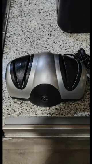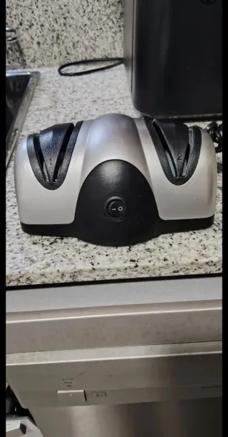 Afilador eléctrico para mantener tus cuchillos en perfecto estado. Su diseño compacto lo hace ideal para cualquier cocina. - Dos ranuras para afilado. - Interruptor de encendido/apagado.