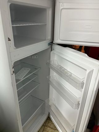 Nevera de color blanco, con compartimentos para verduras y congelados en perfecto estado. - Cajón para verduras. - Dos cajones para congelados.