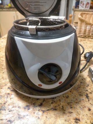 Freidora eléctrica de la marca Aigostar con un diseño moderno en acero inoxidable. Ideal para preparar tus comidas favoritas de forma rápida y sencilla. - Capacidad 1500ml. - Control de temperatura ajustable. - Ventana para observar el proceso de fritura. - Cesta extraíble para facilitar la limpieza. - Más características en la última foto. - Puedo incluir de regalo la cesta que se ve en una de las fotos, es un pelín más ancha y alta que la original. - La freidora tiene señales evidentes de uso pero funciona perfectamente, la vendo porque he comprado una de mayor capacidad.
