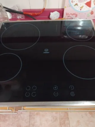 Vitrocerámica INDESIT de cuatro fuegos. - Encimera de cristal negro. - Controles táctiles. - Indicador de calor residual.