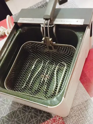 Freidora eléctrica con cesta. - Asa plegable para la cesta.