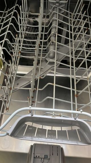 Lavavajillas de acero inoxidable con cestas. - Cesta superior ajustable. - Cesta inferior con soportes. - Compartimento para cubiertos.