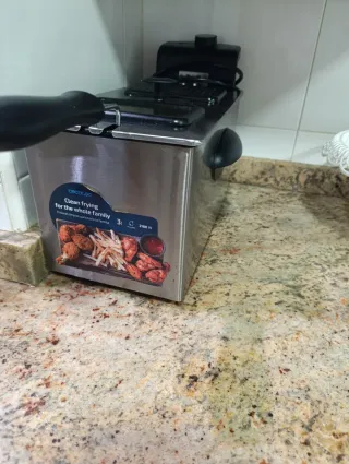 Freidora eléctrica Cecotec con capacidad de 3 litros y potencia de 2180W. Ideal para preparar comidas para toda la familia. - Diseño en acero inoxidable. - Tapa con filtro anti-olores y visor. - Termostato regulable.