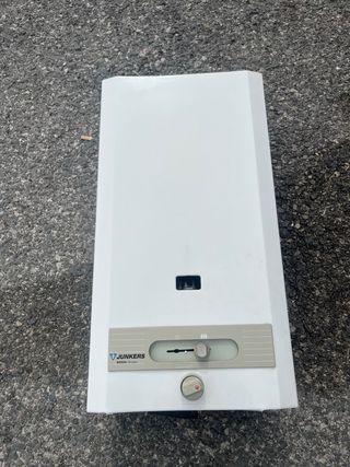 Calentador de agua Junkers Bosch Grupo. - Color blanco. - Panel frontal con control de temperatura y selector.