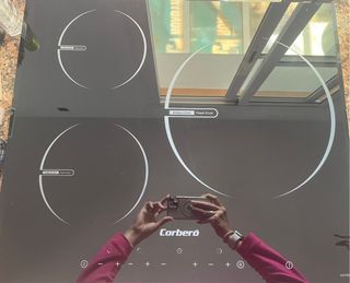 Placa de inducción Corberó con tres zonas de cocción. - Diseño moderno y elegante. - Controles táctiles intuitivos. - Función Power Boost para calentamiento rápido. - Temporizador