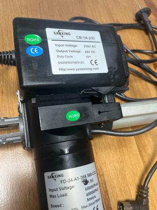 Motor lineal para sillón o sofá reclinable eléctrico. - Marca: SAXING - Modelo: CB-1A-230 / FD-24-41-3 - Voltaje de entrada: 230V AC - Voltaje de salida: 24V DC - Ciclo de trabajo: 10% No admito devolucion