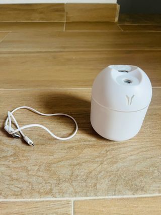 Mini difusor de aromas, humidificador, nuevo a estrenar. Ocupa poco espcio, 10cm de alto. Ideal para tener encima de un escritorio por ejemplo y mantener la zona de trabajo aromatizada. Pequeño deposito para agua y mezclar con aceites de aromas. Funcion de iñuminacion de colores para ambientar. 💰 Hago lotes y descuentos al comprar más productos de mi perfil.