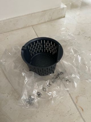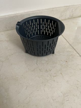 Cestillo para Thermomix TM5. - Material: Plástico resistente. - Color: Gris oscuro. - Diseño con ranuras para el drenaje.