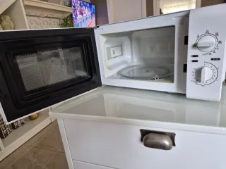 Microondas blanco de la marca Home Sense. Cuenta con función grill. - Función Grill. 1000 - Mandos giratorios para tiempo y potencia.
