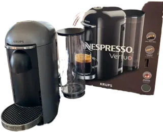 Máquina de café Nespresso Vertuo de la marca Krups. - Color gris. - Incluye depósito de agua. - Compatible con cápsulas de 3 tamaños diferentes.