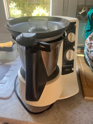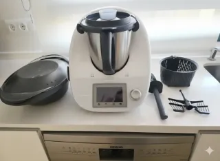 Vendo Robot de cocina Thermomix TM5 original de Vorwerk en perfecto estado de funcionamiento y muy cuidada. Se vende por cambio a modelo superior. El pack incluye todos los accesorios originales: -Vaso de acero inoxidable de 2,2L. -Varoma completo (para cocina al vapor en tres niveles). -Cestillo, Mariposa y Espátula original. -Cubilete medidor. Muy bien conservada, pantalla táctil impecable y gomas en perfecto estado. Muy poco uso siempre en ambiente doméstico.