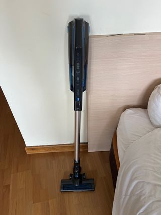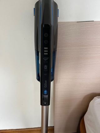 Aspirador de la marca Qilive. - Diseño moderno en color negro y azul. - Tubo metálico. - Cabezal de aspiración. - Panel de control con indicadores.
