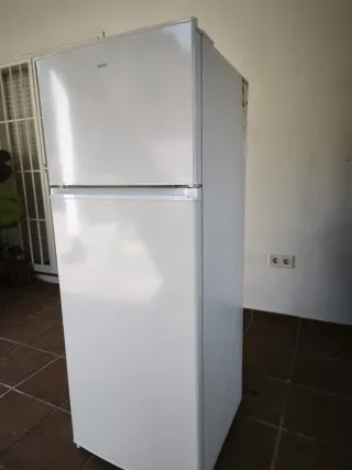 Nevera de la marca Qilive en color blanco 204 litros. En garantía. Perfecto estado prácticamente nueva. En Alcampo vale 228 Euros. Mira las fotos en detalle y podrás comprobar que está nueva. - Diseño moderno y funcional. - Puerta superior para congelador. - Puerta inferior para refrigerador.