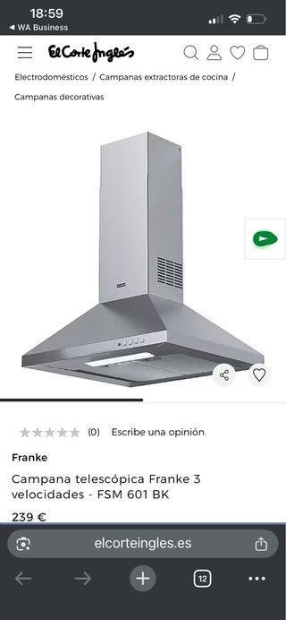 Campana extractora decorativa de la marca Franke, modelo FSM 601 BK. Cuenta con 3 velocidades. - Diseño telescópico. - Acabado en acero inoxidable. Poco usada y bien cuidada, cambio porque hemos incorporado otra dentro del mueble de cocina.