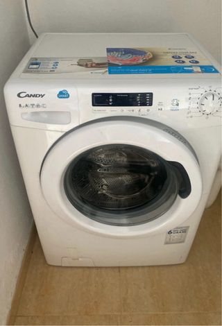 Lavadora Candy de carga frontal en color blanco. - Capacidad de 8 kg. - Clase energética A. - Función Smart. - Panel de control táctil.