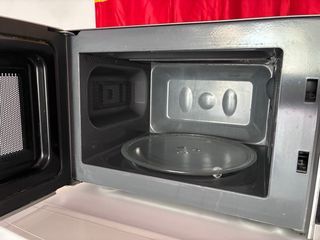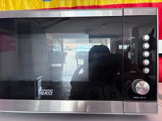 Microondas Teka en color negro y acero inoxidable. Capacidad 20 litros. Con grill. 800w de potencia Muy poco uso - Modelo MWE 205 G. - Diseño moderno y elegante. - Panel de control con botones y dial giratorio.