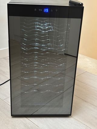 SOLO VENTA EN MANO. Vinoteca Taurus con capacidad para 18 botellas. Su diseño moderno se adapta a cualquier espacio. Está en perfectas condiciones, se ha usado muy poco, es capaz de dar temperaturas de entre 12°c y 18°c. Se regala un mueble para evitar apoyarla en el suelo. - Puerta de cristal tintado. - Estantes interiores. - Panel de control digital. -Luz interior.