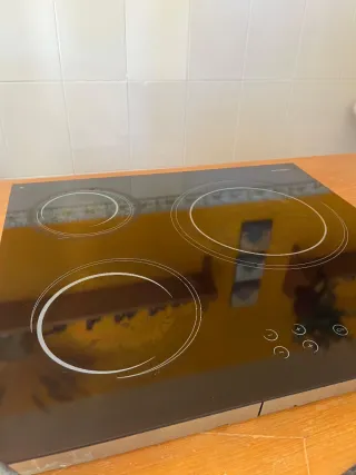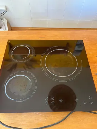 Vitrocerámica de la marca Bluesky con superficie de cristal negro. - Diseño moderno y elegante. - Fácil de limpiar. - Controles táctiles. - Algo rayada por el uso - Sin enchufe